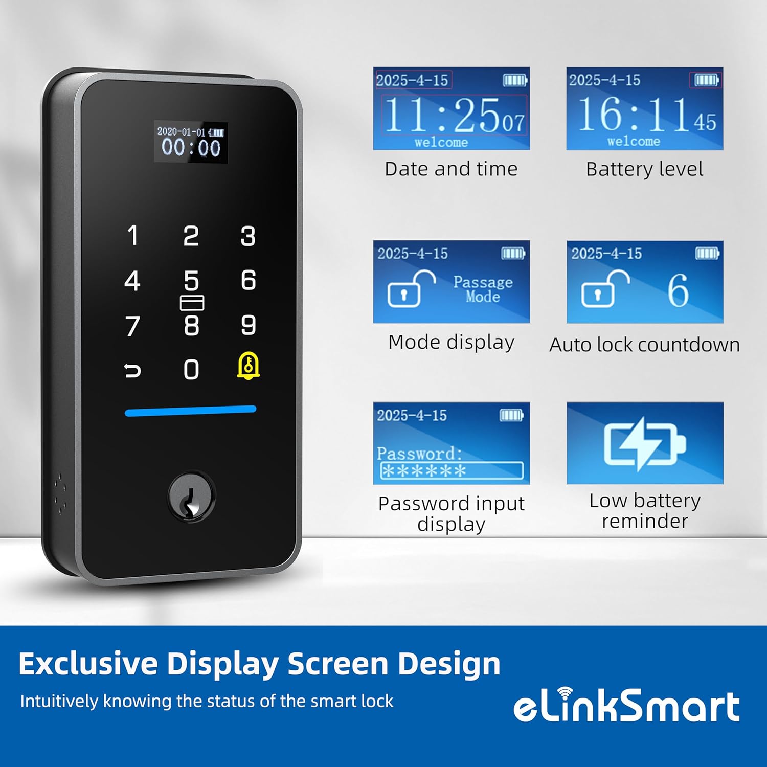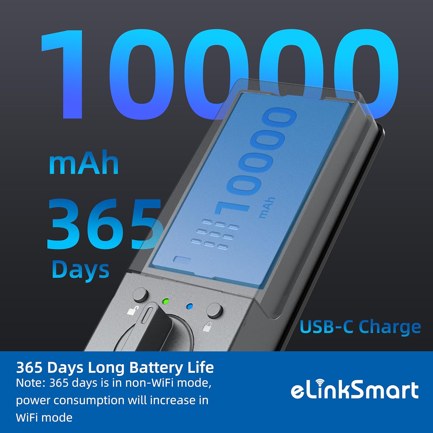 - 【No gateway】Unlock from Anywhere Anytime: Built in WIFI, no gateway required. Use eSmartLock APP to remotely unlock, get real-time notifications, view visitors, view unlock records, and easily set up.