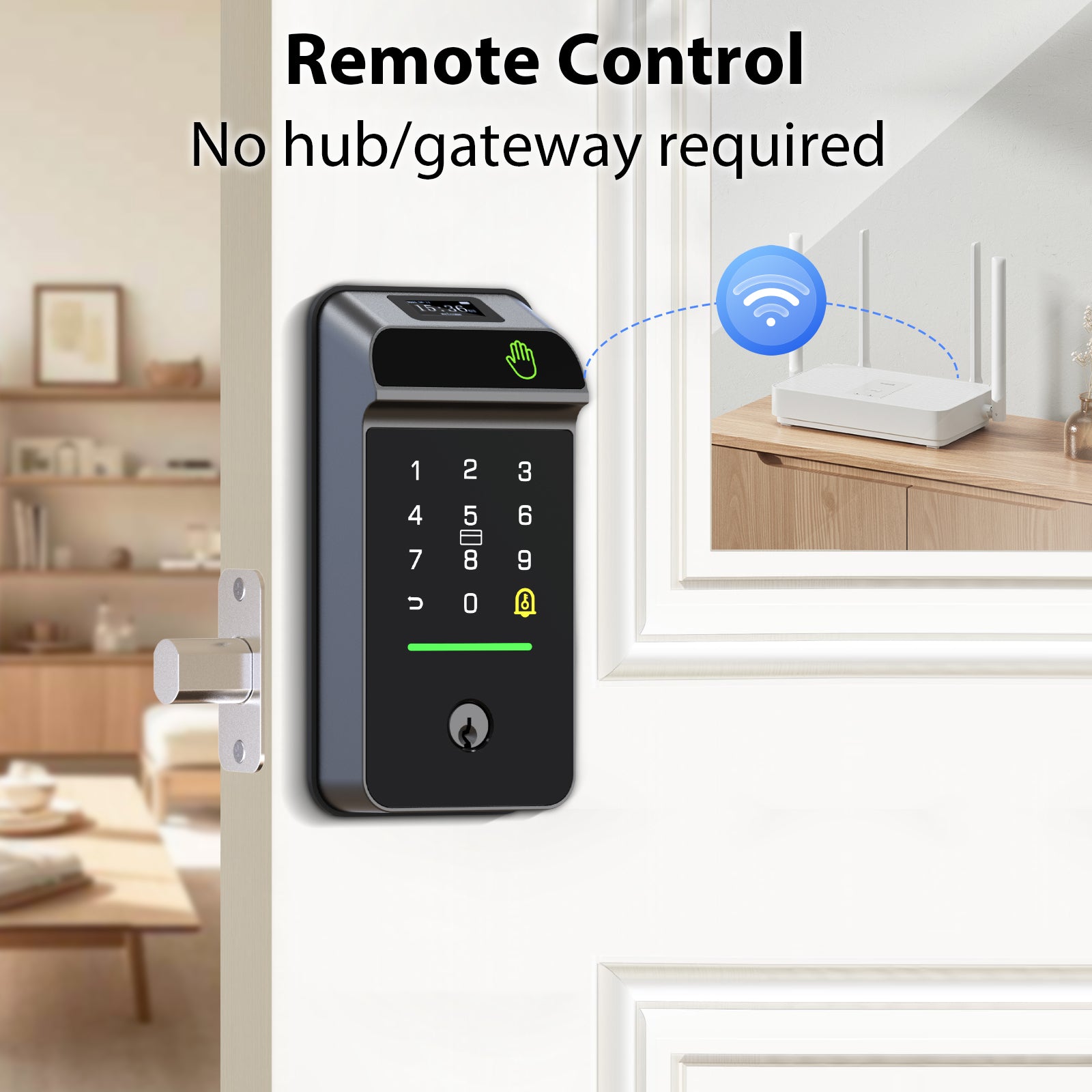 - 【No gateway】Unlock from Anywhere Anytime: Built in WIFI, no gateway required. Use eSmartLock APP to remotely unlock, get real-time notifications, view visitors, view unlock records, and easily set up.